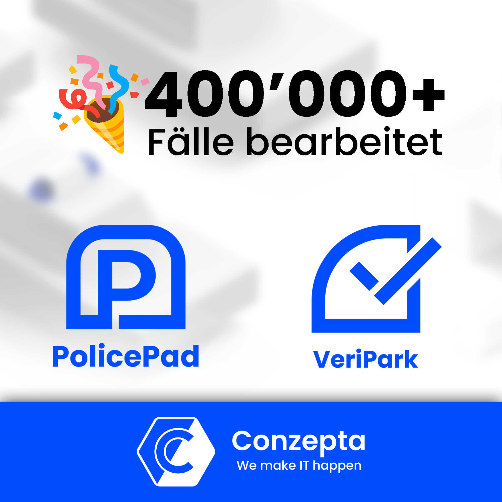 Wir von der Conzepta Team AG können für das laufende Jahr 2025 bereits über 400'000 bearbeitete Fälle über unsere Kunden verzeichnen. Unsere beiden Produkte PolicePad und VeriPark werden von Behörden, Sicherheitsdiensten und privaten Personen zur digitalen Erfassung von Übertretungen, Anzeigen und Fällen unbefugten Parkens eingesetzt. Diese Zahlen zeigen, dass unsere Lösungen im Alltag der Anw ...